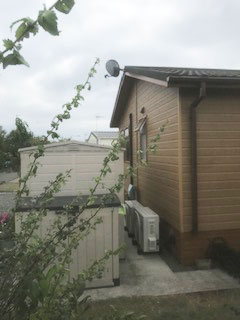 The air conditioning pipe work was installed discreetly in black plastic trunking and the 2-air conditioning multisplit outdoor units were positioned at the end of the holiday home behind his garden store as per the photos.